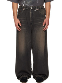 Non-stretch denim jeans. · Fading and whiskering throughout · Wide-leg · Belt loops at elasticized waistband · Five-pocket styling · Zip fly · Logo patches at front · Drawstring at cuffs · Jacron logo patch at back pocket Supplier color: Black 100% cotton. Made in Japan 252551M186008