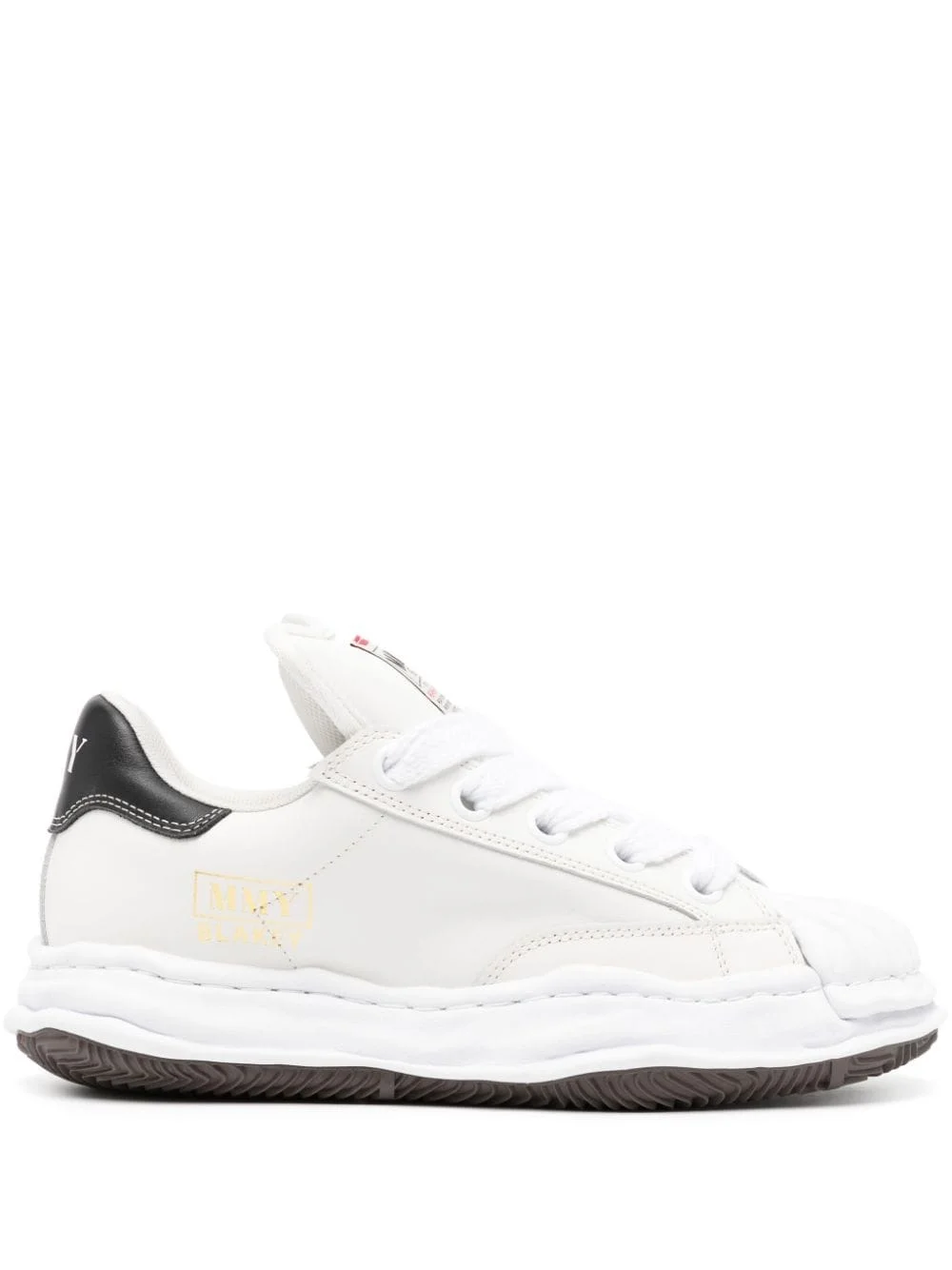 Blakey Original Sole chunky sneakers Maison Mihara Yasuhiro's Original Sole evolved from a clay creation that was hand-moulded by the eponymous designer. A padded leather version defines these Blakey sneakers, which boast a retro basketball-inspired silhouette. Highlights - White/black - Leather - Two-tone design - Padded design - Logo print to the side - Logo patch at the tongue - Round toe - Front lace-up fastening - Chunky rubber sole Made in France Composition Leather 100% SIZE & FIT Measurement HEEL 3.14 in(8 cm) PLATFORM 1.57 in(4 cm)