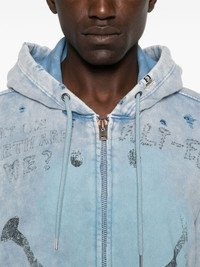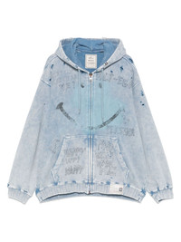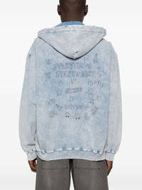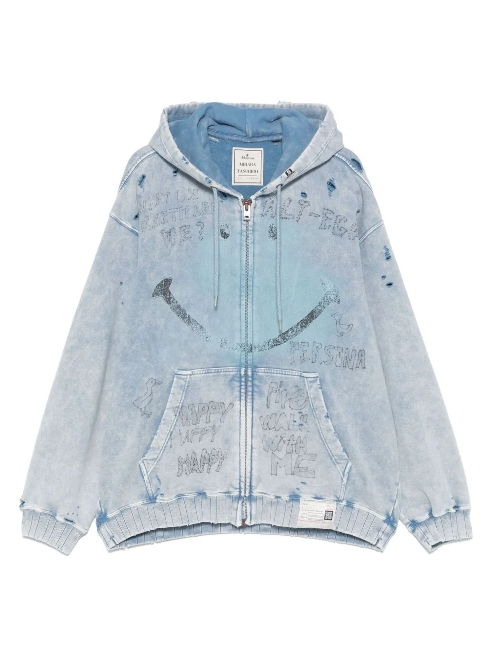 bleached smiley face-print hoodie Highlights - Light blue - Front zip fastening - Classic hood - Two front pouch pockets - Long sleeves Imported Composition Cotton 100% SIZE & FIT Model measurements Height 6 ft 0 in(1.84 m) Bust/Chest 37.79 in(96 cm) Hips 37 in(94 cm) Waist 31.49 in(80 cm) FittingInformation Designed to be unstructured, offering a loose fit throughout The ribbed hem offers a close, comfortable fit Made from a midweight non-stretch fabric, this piece offers minimal elasticity when worn