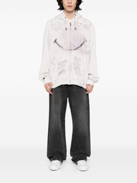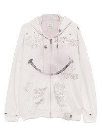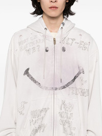 bleached smily-face-print zip-up hoodie
