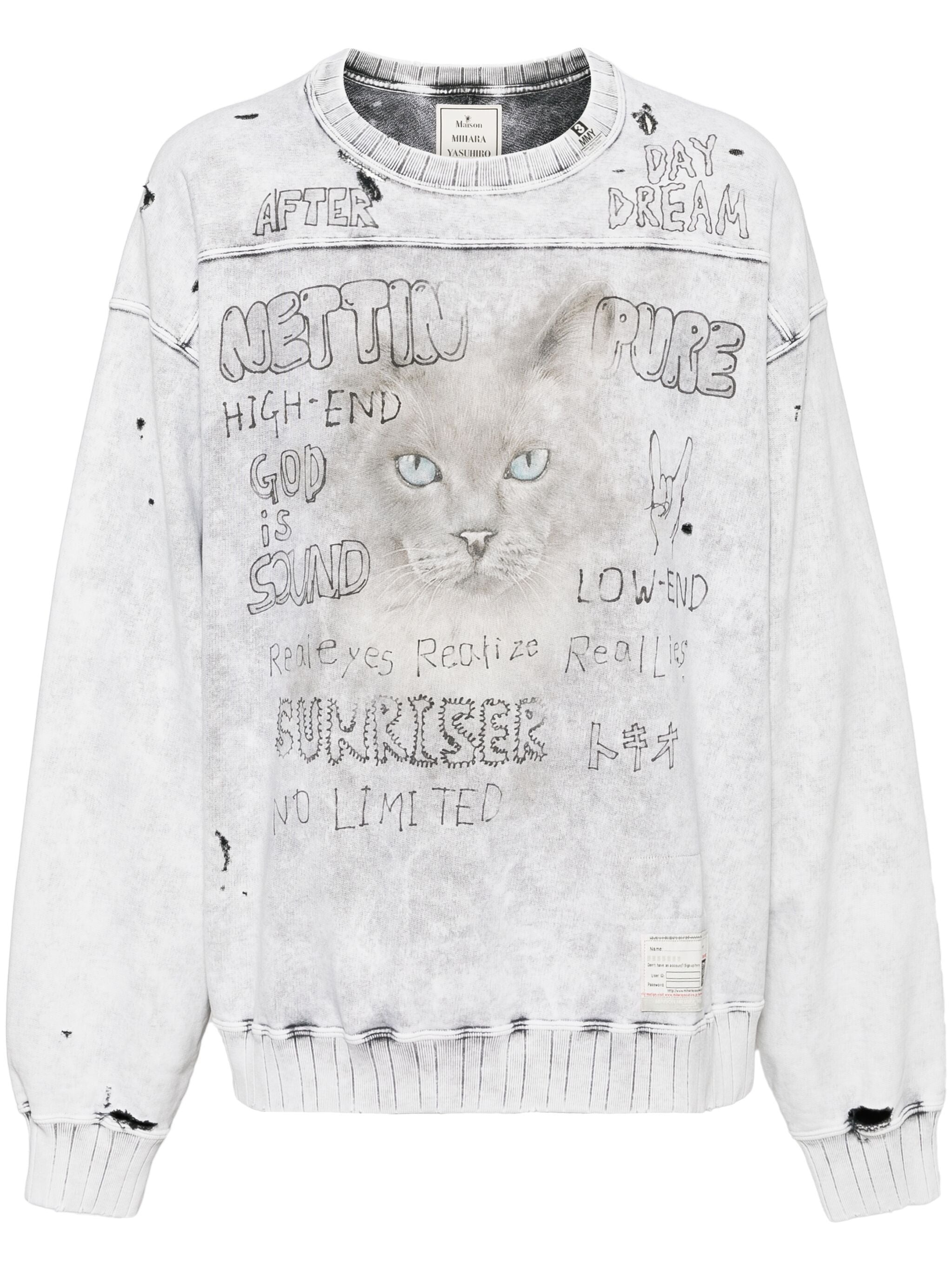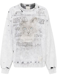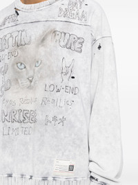 grey cotton washed distressed effect logo patch to the front crew neck drop shoulder long sleeves graphic print to the front and rear ribbed cuffs and hem short side slits French terry lining - Color: GREY - Made in: Japan - Designer Style ID: A13PO552 GRAY Composition and care Cotton: 100.0%