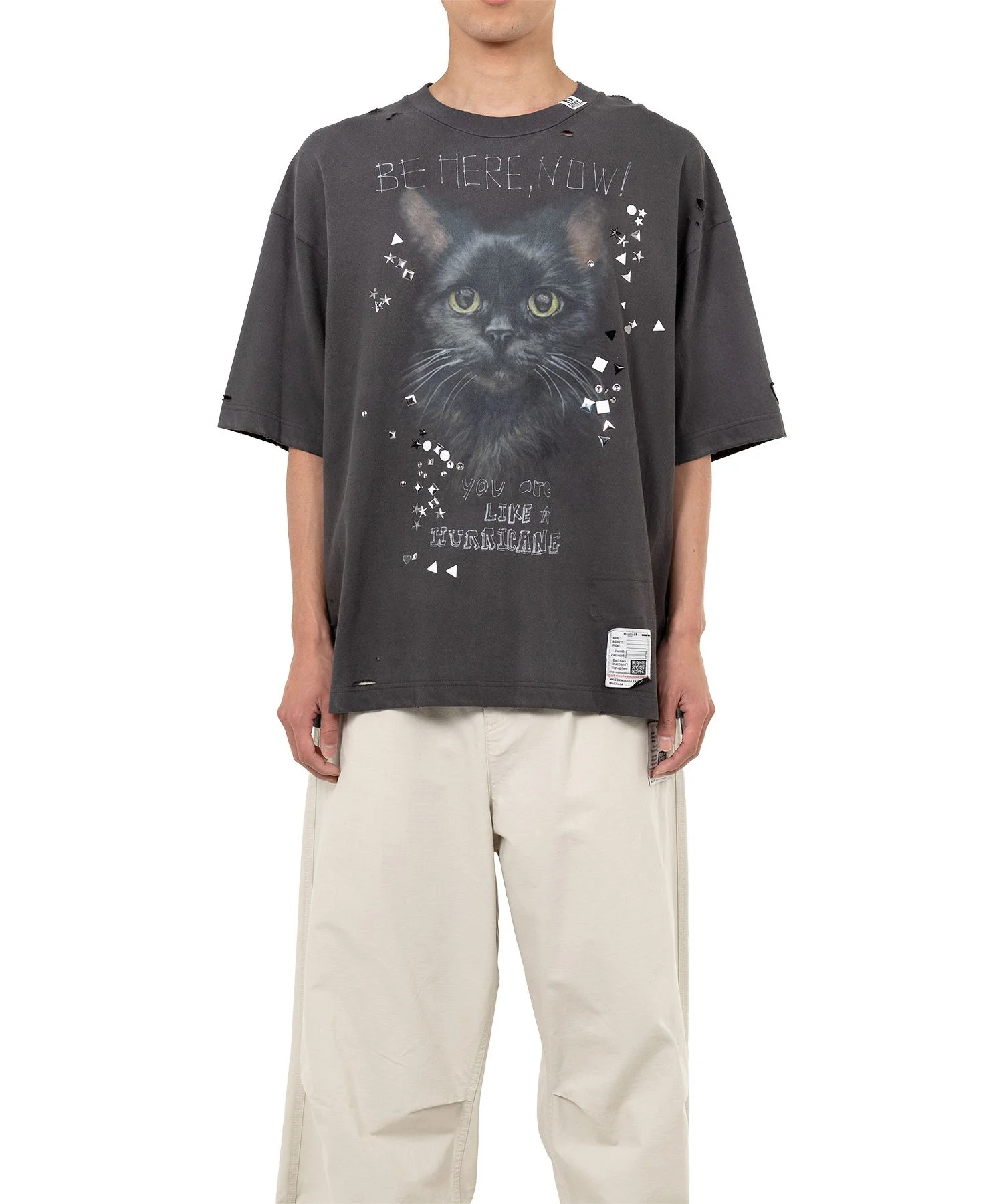 【2025 Autumn/Winter Collection】 Cat Printed Embellished Distressed T-Shirt T-shirt with cat printed on the front. Damaged, rhinestone decorated design. Crew neck. Original embroidered patch on the left cuff. *The cat species printed on the product differs depending on the color of the product. Wearing model : 182cm Wearing size : 48 ※Product images may appear different from the actual item due to lighting conditions during photography or variations in monitor settings. ※Some photos feature sample items; actual products may differ slightly in finish or sizing. ※Color, texture, and specifications may vary slightly due to differences in production timing or individual characteristics of each piece. We appreciate your understanding. - Item No: J15TS752 - Brand: Maison MIHARA YASUHIRO - Category: MENS » TOPS » TSHIRTS - Season: 2025 A/W - Material: COTTON 100% - Made In: JAPAN