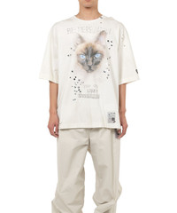 【2025 Autumn/Winter Collection】 Cat Printed Embellished Distressed T-Shirt T-shirt with cat printed on the front. Damaged, rhinestone decorated design. Crew neck. Original embroidered patch on the left cuff. *The cat species printed on the product differs depending on the color of the product. Wearing model : 182cm Wearing size : 48 ※Product images may appear different from the actual item due to lighting conditions during photography or variations in monitor settings. ※Some photos feature sample items; actual products may differ slightly in finish or sizing. ※Color, texture, and specifications may vary slightly due to differences in production timing or individual characteristics of each piece. We appreciate your understanding. - Item No: J15TS752 - Brand: Maison MIHARA YASUHIRO - Category: MENS » TOPS » TSHIRTS - Season: 2025 A/W - Material: COTTON 100% - Made In: JAPAN