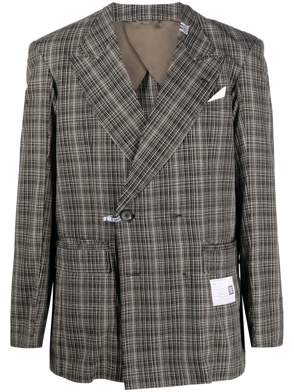 checked-pattern blazer brown/multicolour cotton-linen blend check pattern double-breasted button fastening peak lapels chest welt pocket two front flap pockets long sleeves Imported Composition Outer: Cotton 95%, Linen/Flax 5% Lining: Cupro 100% SIZE & FIT Model measurements Height 6 ft 0 in(1.84 m) Bust/Chest 35.82 in(91 cm) Hips 37 in(94 cm) Waist 28.34 in(72 cm) FittingInformation Cut for a loose fit Made with a mid-weight non-stretch fabric Washing instructions Dry Clean Only