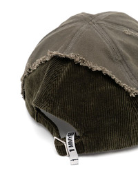 frayed detailing cap Highlights - Khaki green - Cotton - Corduroy - Frayed detailing - Six-panel construction - Curved peak - Adjustable strap to the rear Imported Composition Cotton 100% SIZE & FIT Measurement BRIM 2.95 in(7.5 cm) CIRCUMFERENCE 22.04 in(56 cm)