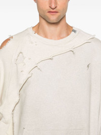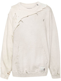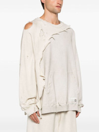 white/light grey cotton jersey texture melange effect layered design distressed effect crew neck patch detail drop shoulder long sleeves logo patch at the sleeve ribbed cuffs and hem front pouch pocket French terry lining Size & Fit Model Measurements: Height: 1.86 m Bust/Chest: 92.0 cm Hips: 96.0 cm Waist: 78.0 cm Model wears size 50 Fabric and Care Designer Style ID: A13PO582 Designer Colour: WHITE Composition: Cotton 100% Washing instructions: Hand Wash Made in Japan