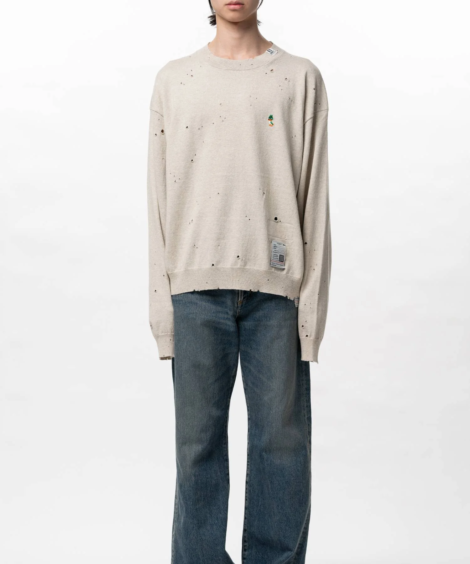 【2026 Spring /Summer Collection】 Distressed Knit Sweater Cotton knit cardigan. Features Leon embroidery on the left chest. Distressed finish for a vintage look. Crew neck. Wearing model : 185cm Wearing size : 46 ※Product images may appear different from the actual item due to lighting conditions during photography or variations in monitor settings. ※Some photos feature sample items; actual products may differ slightly in finish or sizing. ※Color, texture, and specifications may vary slightly due to differences in production timing or individual characteristics of each piece. We appreciate your understanding. ※Intentional distressing such as holes, fading, and staining is part of the design and reflects the character of the item. Please enjoy these features as part of its unique aesthetic. - Item No: J16SW712 - Brand: Maison MIHARA YASUHIRO - Category: MENS » TOPS » KNIT - Season: 2026 S/S - Material: Cotton100% - Made In: JAPAN