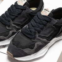 - Maison Mihara Yasuhiro - Distressed Sneaker - Low top - Round toe - Lace-up closure - Mesh and suede upper - Sculpted platform midsole - Rubber outsole - Color: Black - Material: 100% Textile; 100% Rubber