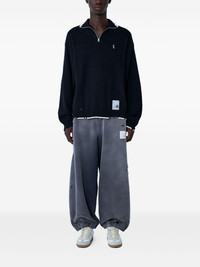 distressed half-zip sweater Highlights - Black - Half-zip fastening - Stand collar - Long sleeves - Ribbed trims - Distressed cotton knit - Embroidered detail Imported Composition Cotton 100% Washing instructions Read Manufacturer Guidelines
