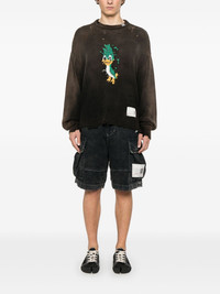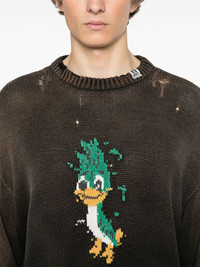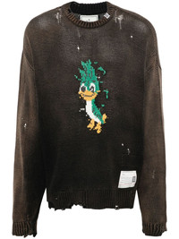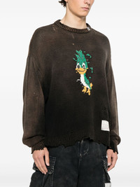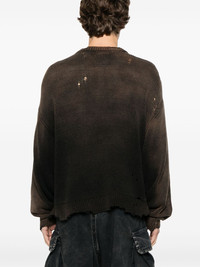 distressed sweater Highlights - Chocolate brown - Crew neck - Drop shoulder - Long sleeves - Patterned jacquard Imported Composition Cotton 61%, Acrylic 39% SIZE & FIT Model measurements Height 6 ft 2 in(1.87 m) Bust/Chest 38.97 in(99 cm) Hips 37.99 in(96.5 cm) Waist 29.52 in(75 cm) FittingInformation Designed to be unstructured, offering a loose fit throughout Made with a midweight knit, this piece offers some stretch