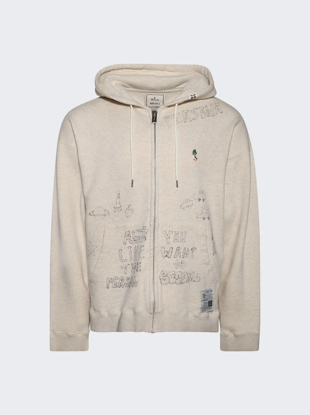 Details - Regular fit - Long sleeves - Dropped shoulders - Distressed design - Embroidery design on left chest - Zip closure - Drawstring fastening - Hooded - Straight hem - Care according to label - Material: 100% Cotton - Model is 6'1"/185cm and is wearing a size EU48 Brand Style: J14PK721 Designer/Brand: MAISON MIHARA YASUHIRO