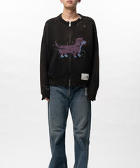【2026 Spring /Summer Collection】 Dog Jacquard Knit Cardigan A jacquard knit cardigan featuring a prominent dachshund motif. The hem and cuffs are designed to look as if the knit has frayed. The entire piece has been distressed. Zip-up closure. Front pockets. Wearing model : 185cm Wearing size : 48 ※Product images may appear different from the actual item due to lighting conditions during photography or variations in monitor settings. ※Some photos feature sample items; actual products may differ slightly in finish or sizing. ※Color, texture, and specifications may vary slightly due to differences in production timing or individual characteristics of each piece. We appreciate your understanding. ※Intentional distressing such as holes, fading, and staining is part of the design and reflects the character of the item. Please enjoy these features as part of its unique aesthetic. - Item No: A16CD501 - Brand: Maison MIHARA YASUHIRO - Category: MENS » TOPS » CARDIGAN - Season: 2026 S/S - Material: Cotton60%, Acrylic40% - Made In: CHINA