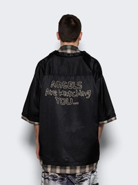 Details - Regular fit - Layered design - Short sleeves - Leon embroidery design on left chest - Flap pockets on both chests - Open collar - Care according to label - Material: 58% Cotton, 42% Rayon - Model is 6'1"/185cm and is wearing a size EU48 Brand Style: J14SH184 Designer/Brand: MAISON MIHARA YASUHIRO