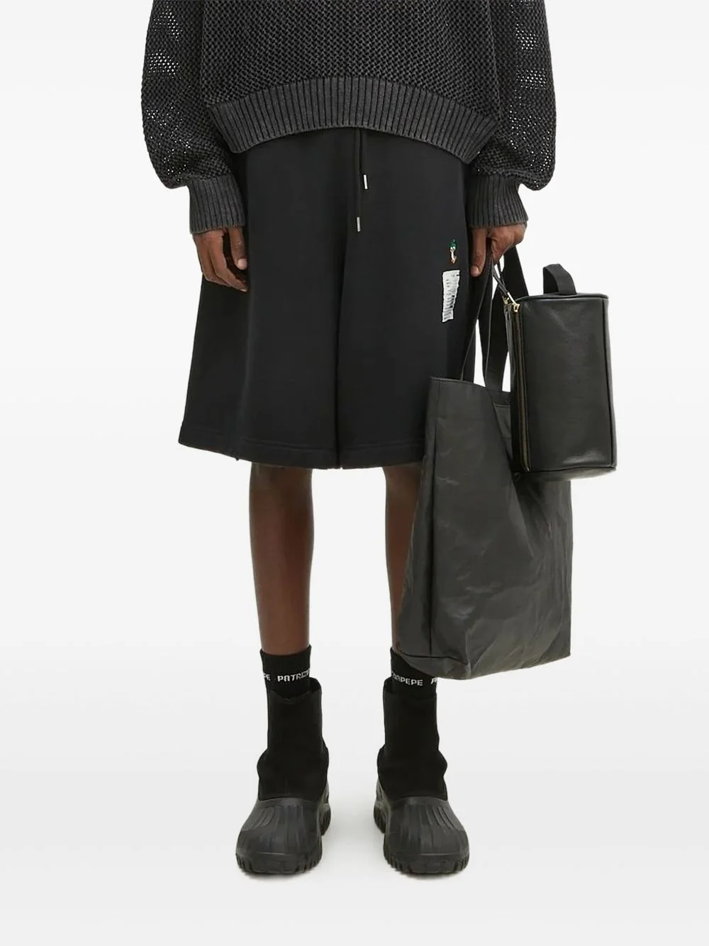 drawstring patch-pocket sweat shorts Highlights - Black - Drawstring fastening - Patch pocket - Embroidered bird motif - Label detail Imported Composition Fabric 100% Washing instructions Read Manufacturer Guidelines