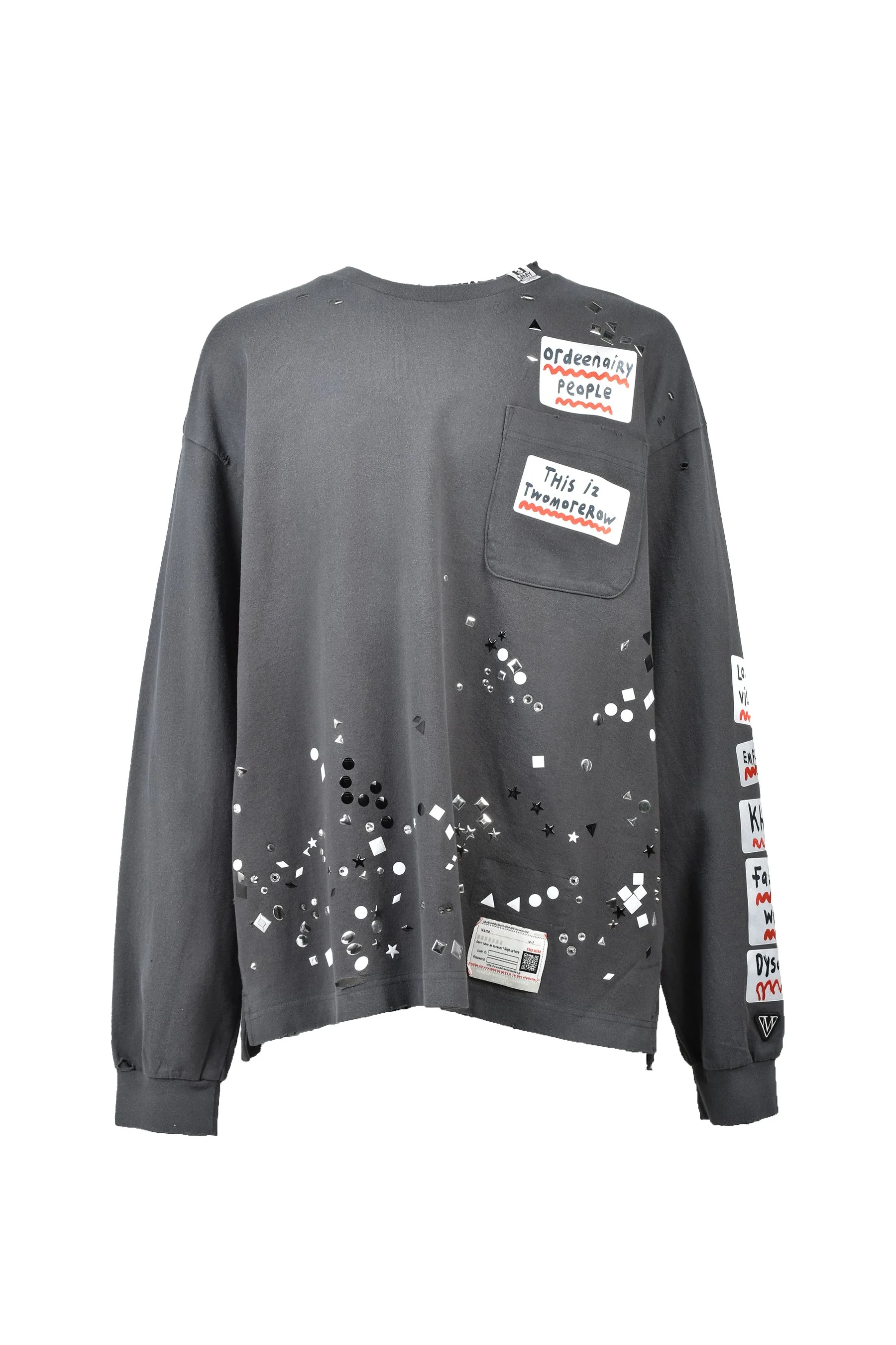 EMBELLISHED STICKER LONG SLEEVES TEE / BLK