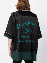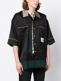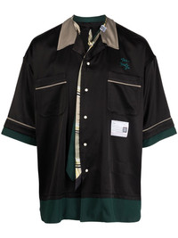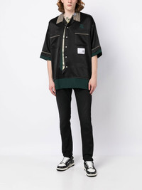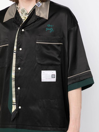 embroidered bowling shirt black embroidered design piped-trim detailing spread collar front button fastening half-length sleeves two chest patch pockets straight hem Imported Composition Body: Rayon 60%, Cotton 40% SIZE & FIT Model measurements Height 6 ft 2 in(1.87 m) Bust/Chest 36.22 in(92 cm) Hips 37.79 in(96 cm) Waist 28.34 in(72 cm) FittingInformation This piece fits true to size. We recommend you get your regular size Cut for an oversized fit Made with a mid-weight non-stretch fabric Washing instructions Dry Clean Only