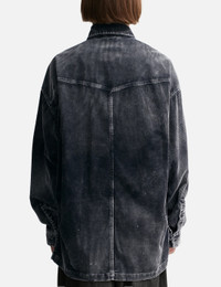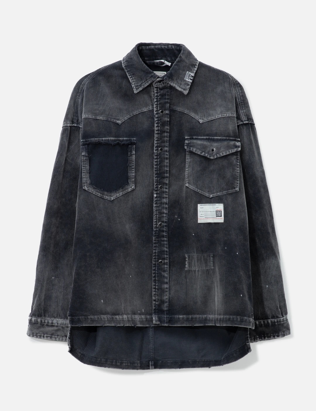 - Maison Mihara Yasuhiro - Aged Corduroy Shirt - Washed corduroy cotton fabric - Worn-out aesthetic - Snap button closure - Distressed details throughout - One chest pocket - Curved hem - Color: Black - Material: 100% Cotton - See more Shirts and Clothing SIZING - Model wears size 48 - Model measures: Height 184cm, Chest 29”/73cm, Waist 25”/62cm, Hip 35”/90cm