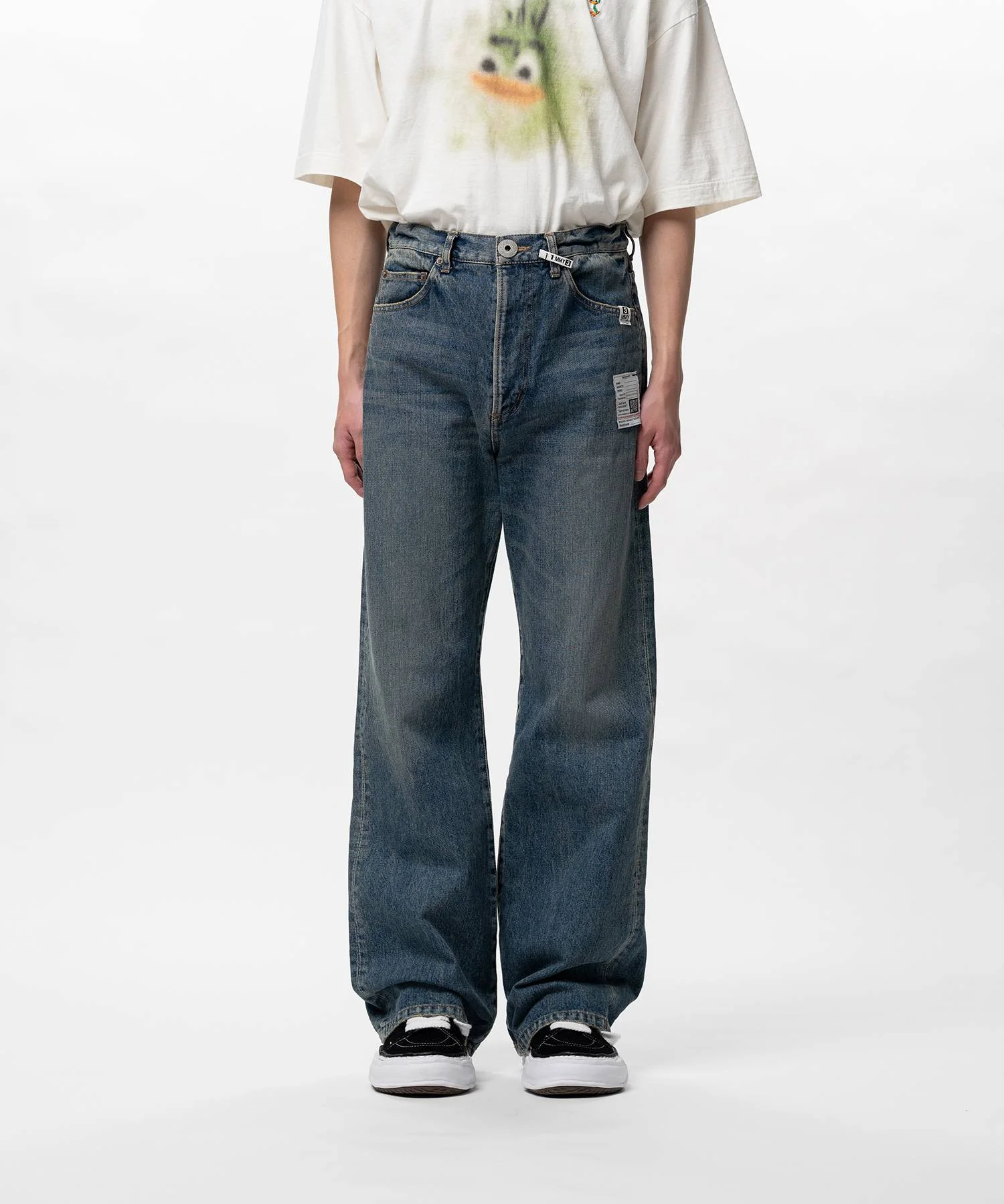【2026 Spring /Summer Collection】 Flared Denim Pants Vintage-washed denim pants. Flared silhouette. Side and back pockets. Elastic waistband with loops. Includes drawstring. Paper label design on the right back pocket. Wearing model : 185cm Wearing size : 46 ※Product images may appear different from the actual item due to lighting conditions during photography or variations in monitor settings. ※Some photos feature sample items; actual products may differ slightly in finish or sizing. ※Color, texture, and specifications may vary slightly due to differences in production timing or individual characteristics of each piece. We appreciate your understanding. ※Intentional distressing such as holes, fading, and staining is part of the design and reflects the character of the item. Please enjoy these features as part of its unique aesthetic. - Item No: J16PT122 - Brand: Maison MIHARA YASUHIRO - Category: MENS » BOTTOM » PANTS - Season: 2026 S/S - Material: COTTON100% - Made In: JAPAN