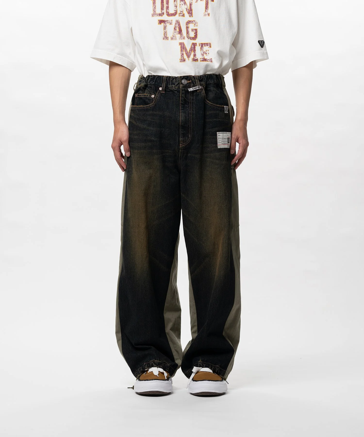 【2026 Spring /Summer Collection】 Front Back Combined Denim Pants Denim and cotton back satin blend pants. A design combining denim pants with cargo pants. Vintage processing primarily featuring bleach treatment. Side and back pockets. Elastic waistband with loops. Includes a drawstring. Wearing model : 185cm Wearing size : 46 ※Product images may appear different from the actual item due to lighting conditions during photography or variations in monitor settings. ※Some photos feature sample items; actual products may differ slightly in finish or sizing. ※Color, texture, and specifications may vary slightly due to differences in production timing or individual characteristics of each piece. We appreciate your understanding. ※Intentional distressing such as holes, fading, and staining is part of the design and reflects the character of the item. Please enjoy these features as part of its unique aesthetic. - Item No: A16PT022 - Brand: Maison MIHARA YASUHIRO - Category: MENS » BOTTOM » PANTS - Season: 2026 S/S - Material: COTTON100% - Made In: JAPAN