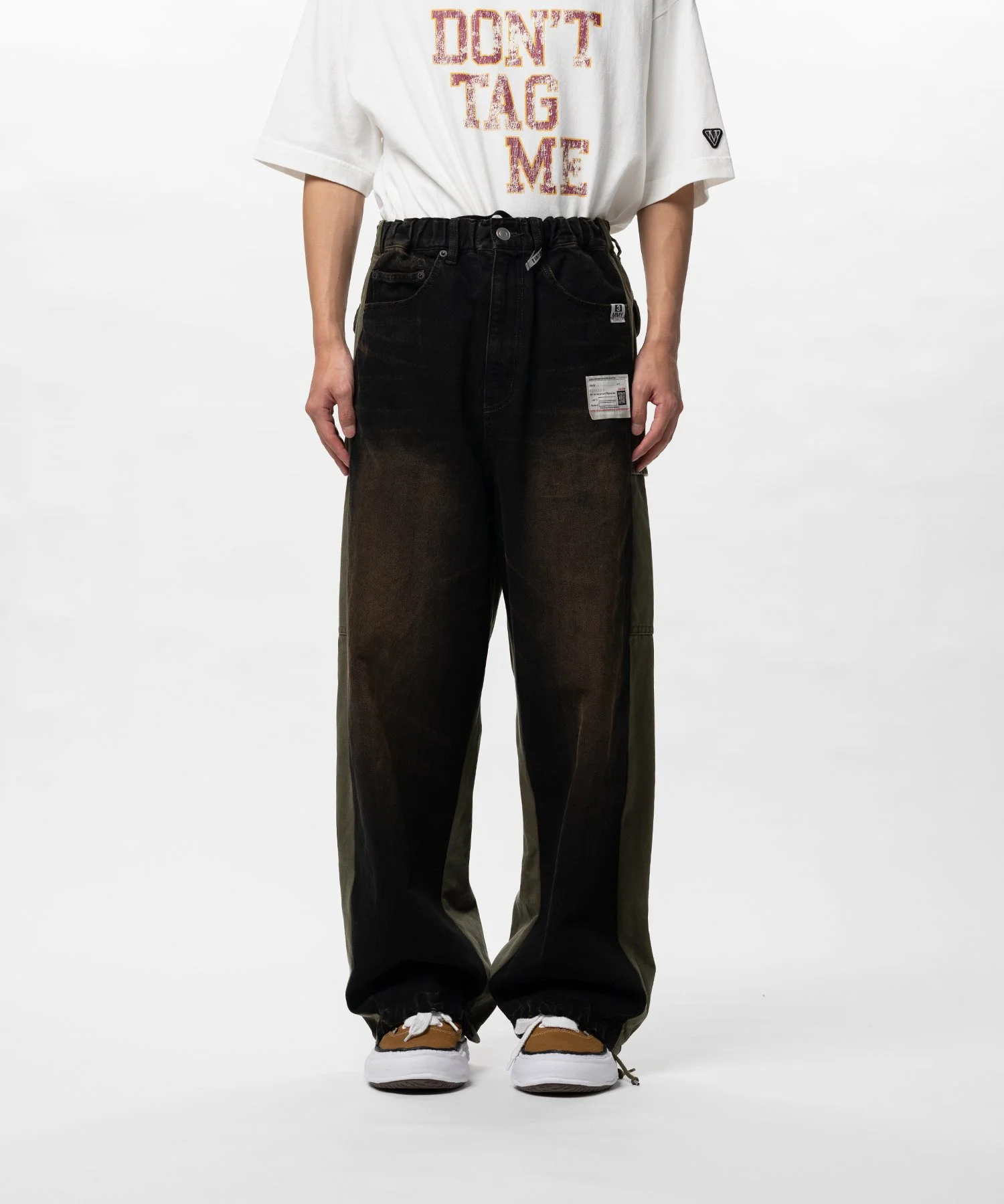 【2026 Spring /Summer Collection】 Front Back Combined Denim Pants Denim and cotton back satin blend pants. A design combining denim pants with cargo pants. Vintage processing primarily featuring bleach treatment. Side and back pockets. Elastic waistband with loops. Includes a drawstring. Wearing model : 185cm Wearing size : 46 ※Product images may appear different from the actual item due to lighting conditions during photography or variations in monitor settings. ※Some photos feature sample items; actual products may differ slightly in finish or sizing. ※Color, texture, and specifications may vary slightly due to differences in production timing or individual characteristics of each piece. We appreciate your understanding. ※Intentional distressing such as holes, fading, and staining is part of the design and reflects the character of the item. Please enjoy these features as part of its unique aesthetic. - Item No: A16PT022 - Brand: Maison MIHARA YASUHIRO - Category: MENS » BOTTOM » PANTS - Season: 2026 S/S - Material: COTTON100% - Made In: JAPAN