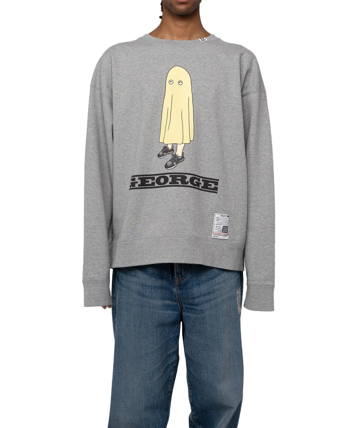 【2024 Autumn/Winter Collection】 GEORGE Printed Pullover Sweatshirt Pullover sweatshirt with BILLY wearing the GEORGE model of the original sole sneaker and the word “GEORGE” printed on the front. BILLY is a shy boy, and when he went outside, he realized he didn't have any clothes, so he covered himself with a sheet. Wearing model : 182cm Wearing size:46 - Item No: A13PO672 - Brand: Maison MIHARA YASUHIRO - Category: MENS » TOPS » SWEATSHIRTS - Season: 2024 A/W - Material: COTTON100% - Made In: JAPAN