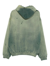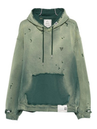 【2025 Autumn/Winter Collection】 Sun Faded Like Hoodie This hoodie has a wide-back silhouette. Bleached and damaged fabric looks as if it has been tanned with age. Front pockets are designed with a torn-out design. Original brand mark embroidered on the left chest. *Hole damage seen throughout is part of the design. Wearing model : 185cm Wearing size : 48 ※Product images may appear different from the actual item due to lighting conditions during photography or variations in monitor settings. ※Some photos feature sample items; actual products may differ slightly in finish or sizing. ※Color, texture, and specifications may vary slightly due to differences in production timing or individual characteristics of each piece. We appreciate your understanding. ※Intentional distressing such as holes, fading, and staining is part of the design and reflects the character of the item. Please enjoy these features as part of its unique aesthetic. ※Stability when wearing may vary depending on the individual. Please use with caution depending on the walking environment. - Item No: A15HD552 - Brand: Maison MIHARA YASUHIRO - Category: MENS » TOPS » SWEATSHIRTS - Season: 2025 A/W - Material: COTTON 100% - Made In: JAPAN