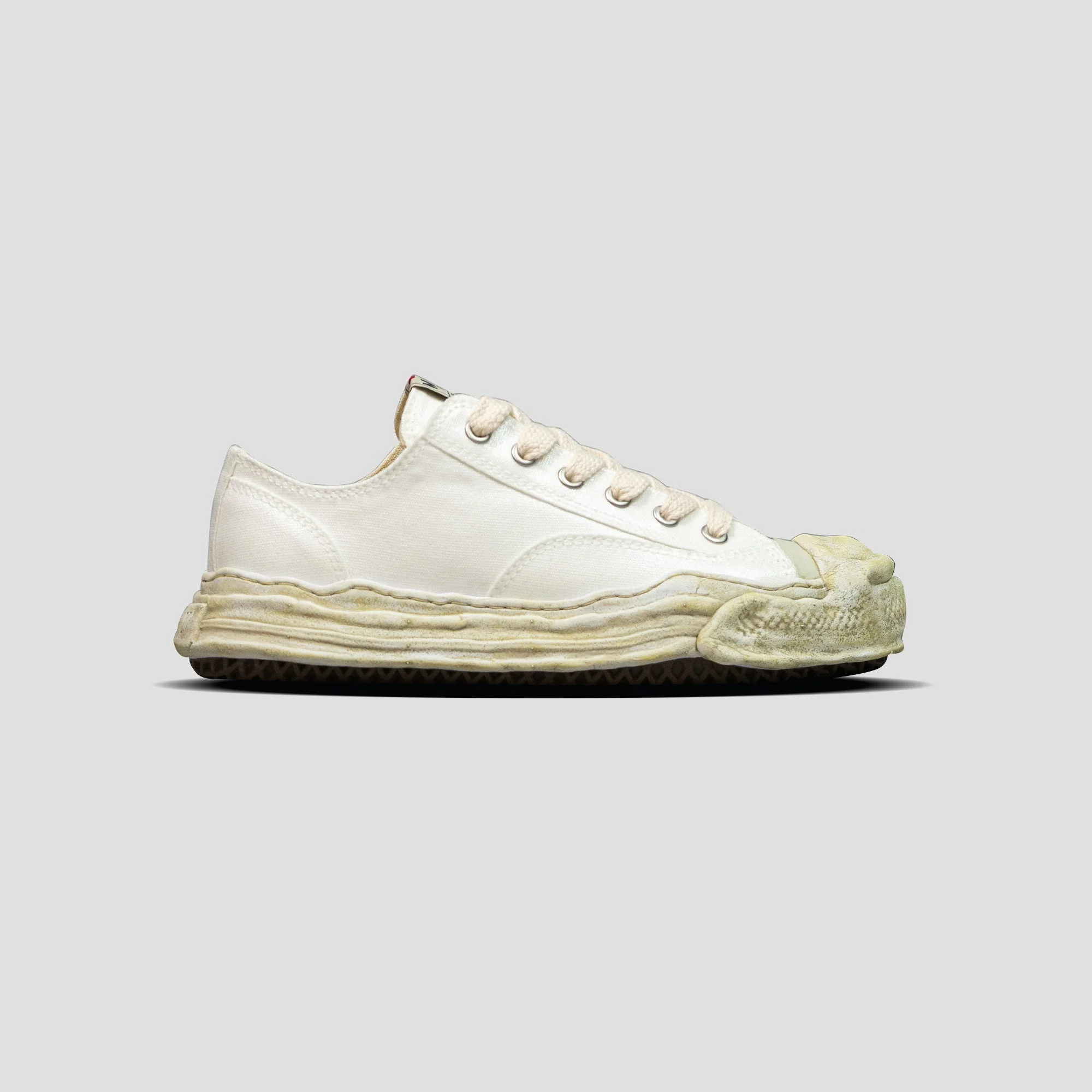 - Maison Mihara Yasuhiro - Hank Low Top Sneaker - Round toe - Lace-up closure - Canvas Upper - Branded tongue - Sculpted platform midsole - Vintage Treatment Rubber outsole - Color: White - Material: 100% Canvas; 100% Rubber