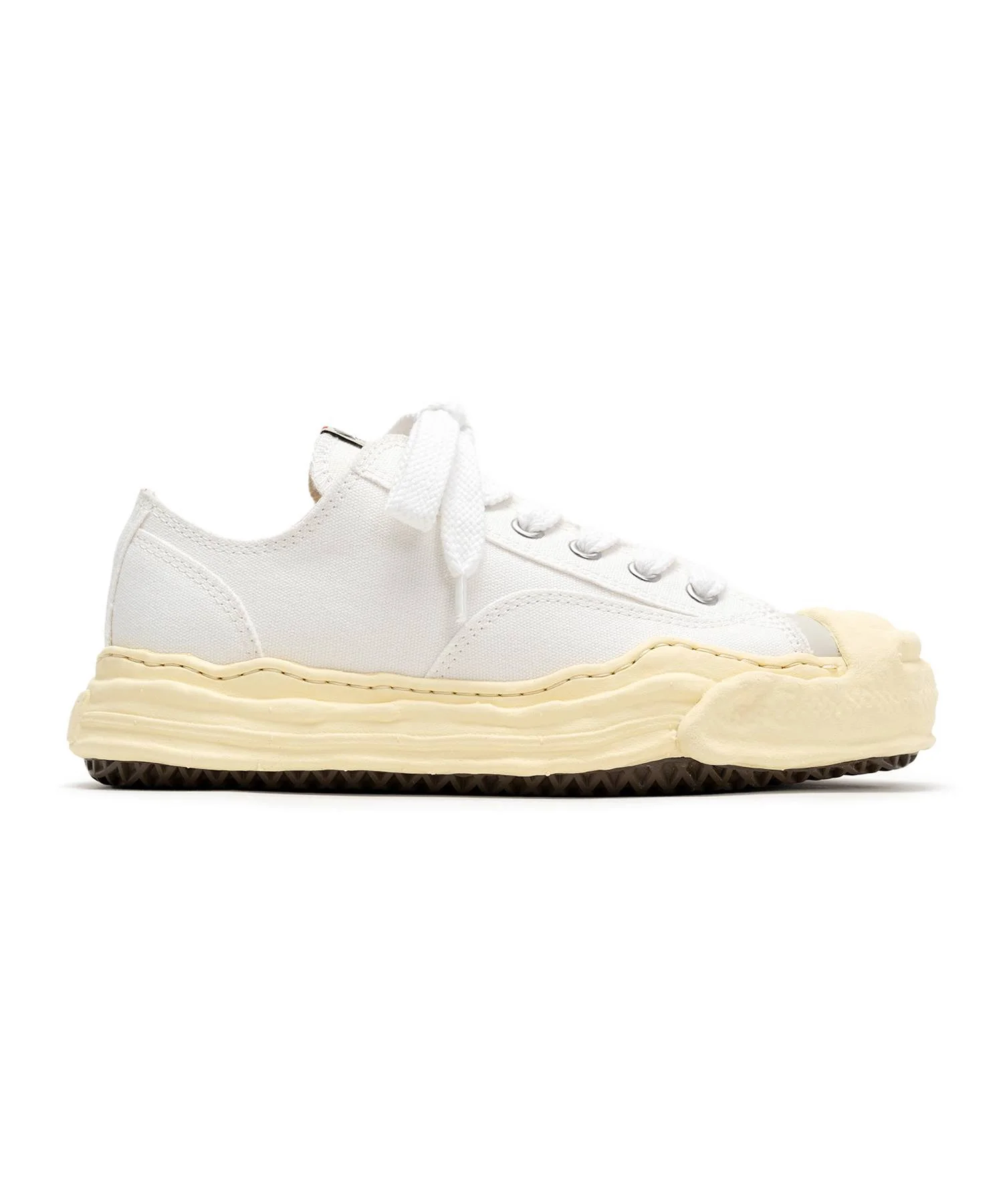 "HANK" Vintage-Like Original Sole Canvas Low-top Sneaker The sneaker uses original sole created by the designer MIHARA modeled by hand using clay. "HANK" model standard. Canvas upper. The sole has a unique vintage-like coloring. * Please note that the notations for 'JP' and 'US' are shown for reference purposes only. ※Product images may appear different from the actual item due to lighting conditions during photography or variations in monitor settings. ※Some photos feature sample items; actual products may differ slightly in finish or sizing. ※Color, texture, and specifications may vary slightly due to differences in production timing or individual characteristics of each piece. We appreciate your understanding. - Item No: A09FW734 - Brand: Maison MIHARA YASUHIRO - Category: EVERYONE » SHOES » SNEAKERS - Material: UPPER : COTTON SOLE : RUBBER - Made In: CHINA