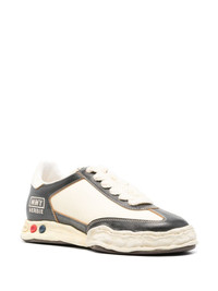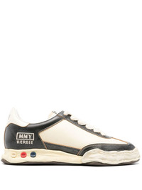 Herbie OG Sole leather sneakers Maison Mihara Yasuhiro's Herbie sneakers are a low-top design modelled on classic tennis styles. The panelled leather upper and hand-modelled rubber sole evoke an avant-garde look that’s distinctive to the brand. Highlights - White/black - Calf leather - Contrast stitching - Round toe - Front lace-up fastening - Logo patch at the tongue - Logo print to the side - Rubber sole Imported Composition Lining: Fabric 100% Sole: Rubber 100% Outer: Calf Leather 100% SIZE & FIT Measurement HEEL 1.57 in(4 cm) Sole height 0.98 in(2.5 cm)