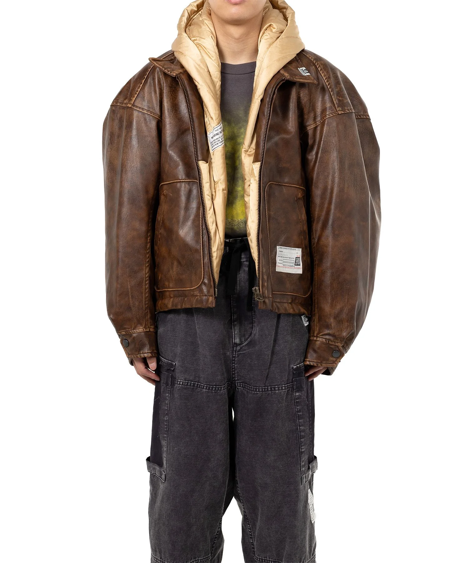 【2025 Autumn/Winter Collection】 Extended Placket Hood Coated Jacket The jacket's turned-up side extends to form a hood. Zip-up closure. Side and inside pockets. Oversized, wide-back silhouette. Wearing model : 182cm Wearing size : 46 ※Product images may appear different from the actual item due to lighting conditions during photography or variations in monitor settings. ※Some photos feature sample items; actual products may differ slightly in finish or sizing. ※Color, texture, and specifications may vary slightly due to differences in production timing or individual characteristics of each piece. We appreciate your understanding. ※Intentional distressing such as holes, fading, and staining is part of the design and reflects the character of the item. Please enjoy these features as part of its unique aesthetic. - Item No: A15BL072 - Brand: Maison MIHARA YASUHIRO - Category: MENS » OUTER » BLOUSON - Season: 2025 A/W - Material: POLYURETHANE 64% POLYESTER 36% - Made In: JAPAN