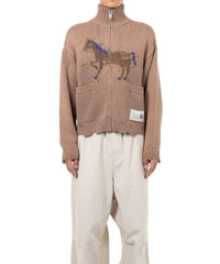 【2025 Autumn/Winter Collection】 Horse Jacquard Knit Cardigan Jacquard knit cardigan with a horse motif woven throughout. The hem and cuffs are designed as if the knit were frayed. Damaged throughout. Zip-up. Front pockets. *The color of the product may vary in parts due to the processing. Wearing model : 185cm Wearing size : 48 ※Product images may appear different from the actual item due to lighting conditions during photography or variations in monitor settings. ※Some photos feature sample items; actual products may differ slightly in finish or sizing. ※Color, texture, and specifications may vary slightly due to differences in production timing or individual characteristics of each piece. We appreciate your understanding. ※Intentional distressing such as holes, fading, and staining is part of the design and reflects the character of the item. Please enjoy these features as part of its unique aesthetic. - Item No: A15CD511 - Brand: Maison MIHARA YASUHIRO - Category: MENS » TOPS » CARDIGAN - Season: 2025 A/W - Material: COTTON 70%, WOOL 30% - Made In: JAPAN