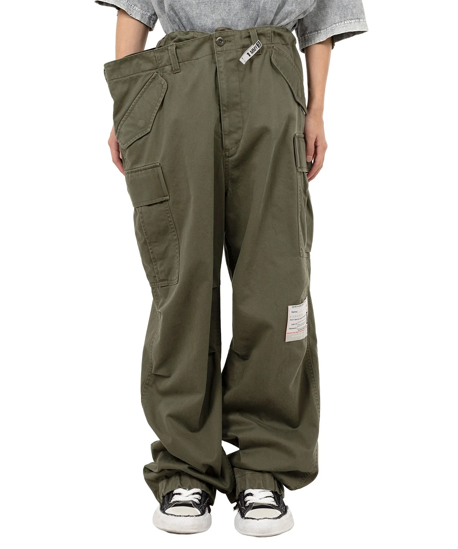 【2025 Autumn/Winter Collection】 Huge Layered Cargo Pants Huge silhouette cargo pants. Double-layer design, as if one size larger cargo pants were layered on top of regular size cargo pants. Side and back pockets. Loop design. Attached waist strap. Wearing model : 182cm Wearing size : 48 ※Product images may appear different from the actual item due to lighting conditions during photography or variations in monitor settings. ※Some photos feature sample items; actual products may differ slightly in finish or sizing. ※Color, texture, and specifications may vary slightly due to differences in production timing or individual characteristics of each piece. We appreciate your understanding. - Item No: A15PT056 - Brand: Maison MIHARA YASUHIRO - Category: MENS » BOTTOM » PANTS - Season: 2025 A/W - Material: COTTON 100% - Made In: CHINA