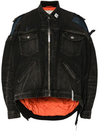 layered denim jacket Highlights - Black/blue Imported Composition Lining: Polyester 100% Inner: Nylon 100% Trims: Wool 100% Outer: Cotton 100% SIZE & FIT Model measurements Height 6 ft 2 in(1.87 m) Bust/Chest 34.25 in(87 cm) Hips 36.22 in(92 cm) Waist 29.52 in(75 cm) FittingInformation Designed for an oversized fit, offering additional room throughout Constructed with additional length on the sleeve Sturdy and hard-wearing, this denim piece offers no stretch This piece fits true to size – take your usual size Washing instructions Dry Clean Only