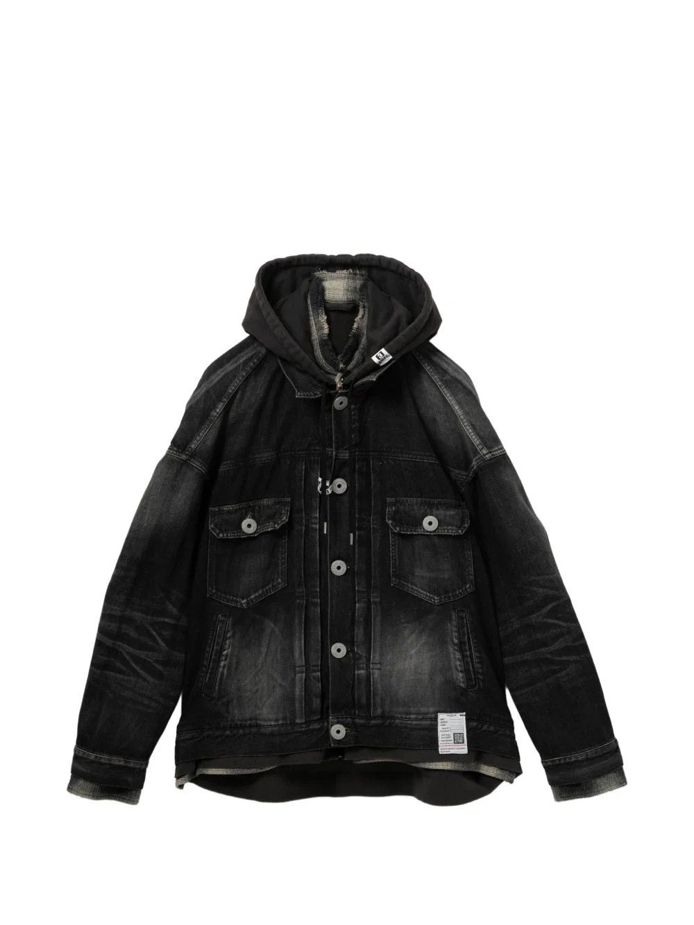 layered hooded denim jacket Highlights - Black - Chest pockets - Front button fastening - Buttoned cuffs Imported Composition Cotton 100% Washing instructions Hand Wash