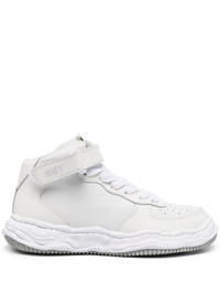 logo-embroidered leather sneakers Highlights - White - Calf leather - Panelled design - Textured finish - Round toe - Perforated toebox - Embroidered logo to the front - Logo patch at the tongue - Branded heel counter - Branded insole - Logo at the sole - Sculpted rubber sole - Front touch-strap over lace-up fastening Imported Composition Sole: Rubber 100% Outer: Calf Leather 100% Lining: Fabric 100% SIZE & FIT Measurement HEEL 1.65 in(4.2 cm) HEIGHT 3.14 in(8 cm)