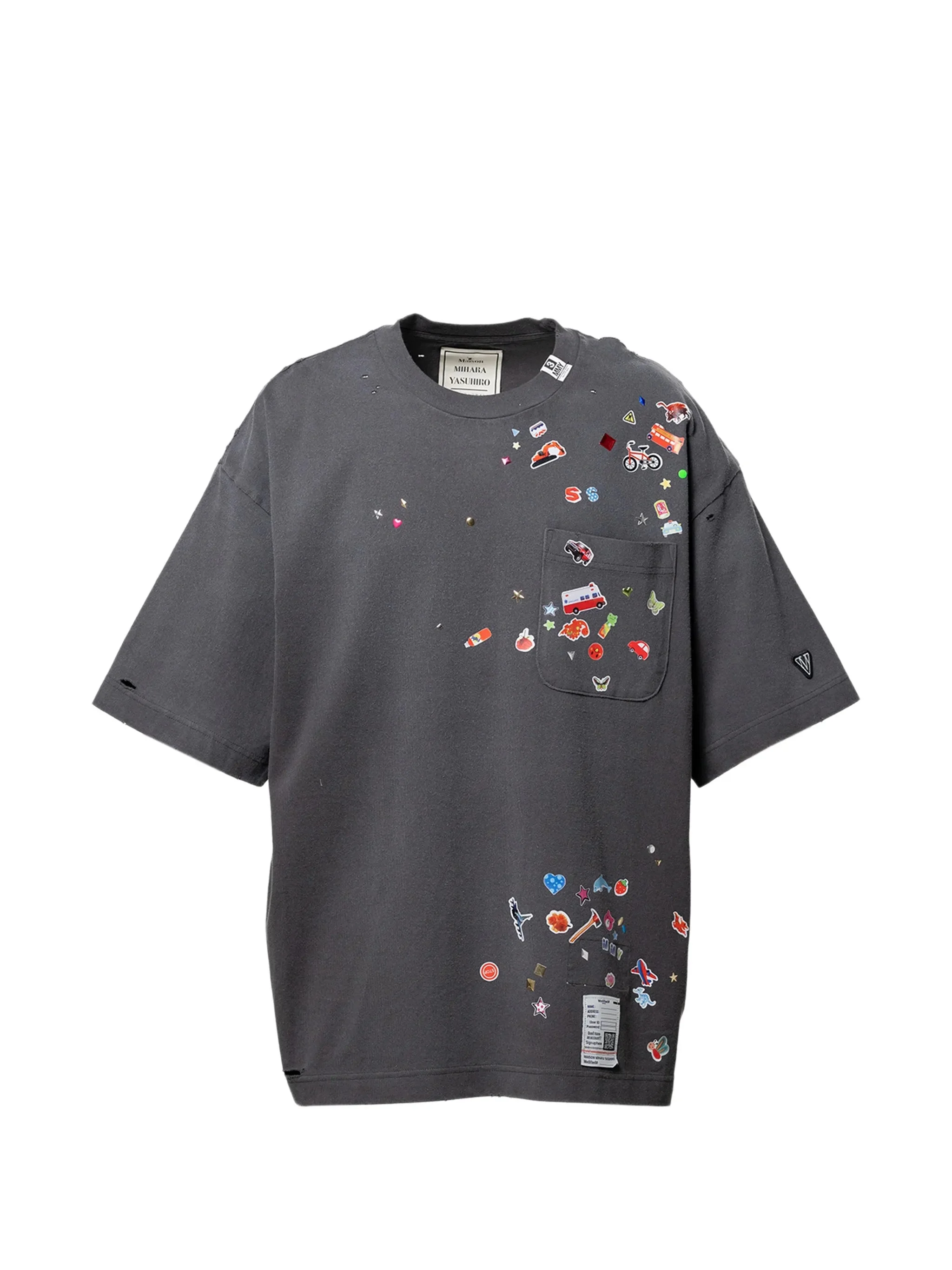 black sticker print chest patch pocket raw-cut hem short sleeves crew neck - Color: GREY - Made in: Japan - Designer Style ID: J16TS821 BLACK Composition and care Body Composition Cotton: 100.0%