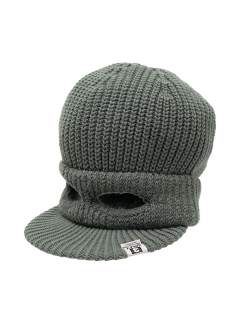 【2025 Autumn/Winter Collection】 Masked Visor Knit Cap Knitted hat with a brim. The design features an eye hole, allowing you to wear it deeply to expose only your eyes, like a balaclava. Wearing size : FREE - Item No: A15AC401 - Brand: Maison MIHARA YASUHIRO - Category: MENS » ACCESSORY » HAT/CAP - Season: 2025 A/W - Material: WOOL 70%, ACRYLIC 30% - Made In: JAPAN