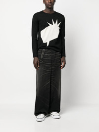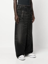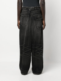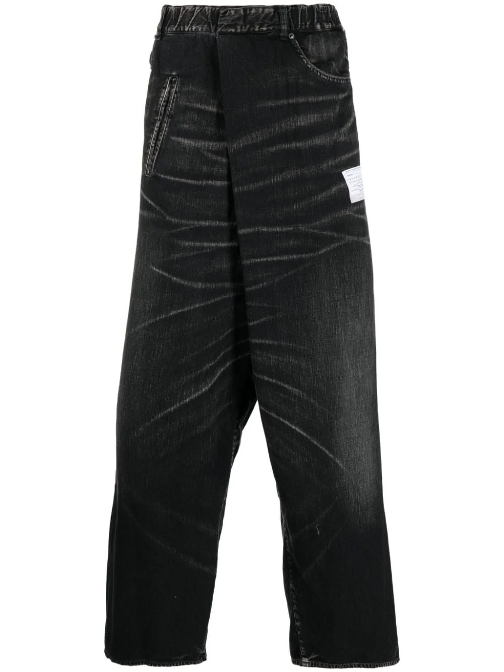 off-centre whiskered wide-leg jeans black cotton denim whiskering effect mini logo tag logo patch to the front belt loops off-centre front fastening elasticated waistband front welt pocket classic five pockets wide leg Imported Composition Cotton 100% SIZE & FIT Model measurements Height 6 ft 2 in(1.87 m) Bust/Chest 36.41 in(92.5 cm) Hips 37 in(94 cm) Waist 29.52 in(75 cm) FittingInformation This piece fits true to size. We recommend you get your regular size Designed for a slim fit at the waist and loose over the leg Made with a mid-weight non-stretch fabric