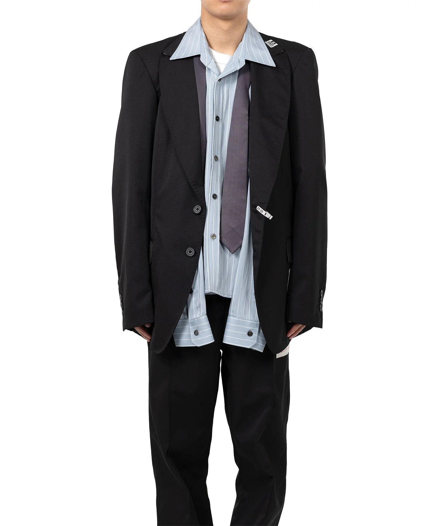 【2025 Autumn/Winter Collection】 Mix Layered Wool Gabardine Jacket Jacket designed with layered shirt with tie sewn on. Side vents. Flap pockets. Inside pocket. Wearing model : 182cm Wearing size : 46 ※Product images may appear different from the actual item due to lighting conditions during photography or variations in monitor settings. ※Some photos feature sample items; actual products may differ slightly in finish or sizing. ※Color, texture, and specifications may vary slightly due to differences in production timing or individual characteristics of each piece. We appreciate your understanding. - Item No: A15JK031 - Brand: Maison MIHARA YASUHIRO - Category: MENS » OUTER » JACKET - Season: 2025 A/W - Material: WOOL 30% POLYESTER 70% - Made In: CHINA