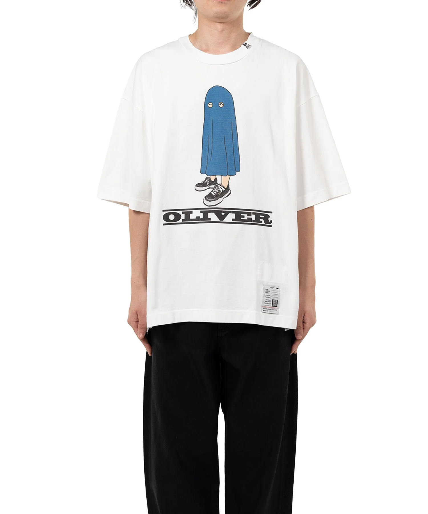 【2025 Autumn/Winter Collection】 OLIVER Printed Half Sleeve T-shirt Half-sleeve T-shirt featuring a print of BILLY. Features BILLY wearing the Oliver model of original sole sneakers, with the word “OLIVER” printed prominently on the front. Shy BILLY realized he had no clothes to wear when going outside, so he's wearing a sheet. Crew neck. Wearing model : 180cm Wearing size : 48 ※Product images may appear different from the actual item due to lighting conditions during photography or variations in monitor settings. ※Some photos feature sample items; actual products may differ slightly in finish or sizing. ※Color, texture, and specifications may vary slightly due to differences in production timing or individual characteristics of each piece. We appreciate your understanding. - Item No: A15TS651 - Brand: Maison MIHARA YASUHIRO - Category: MENS » TOPS » SWEATSHIRTS - Season: 2025 A/W - Material: COTTON100% - Made In: JAPAN