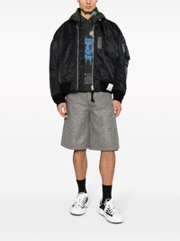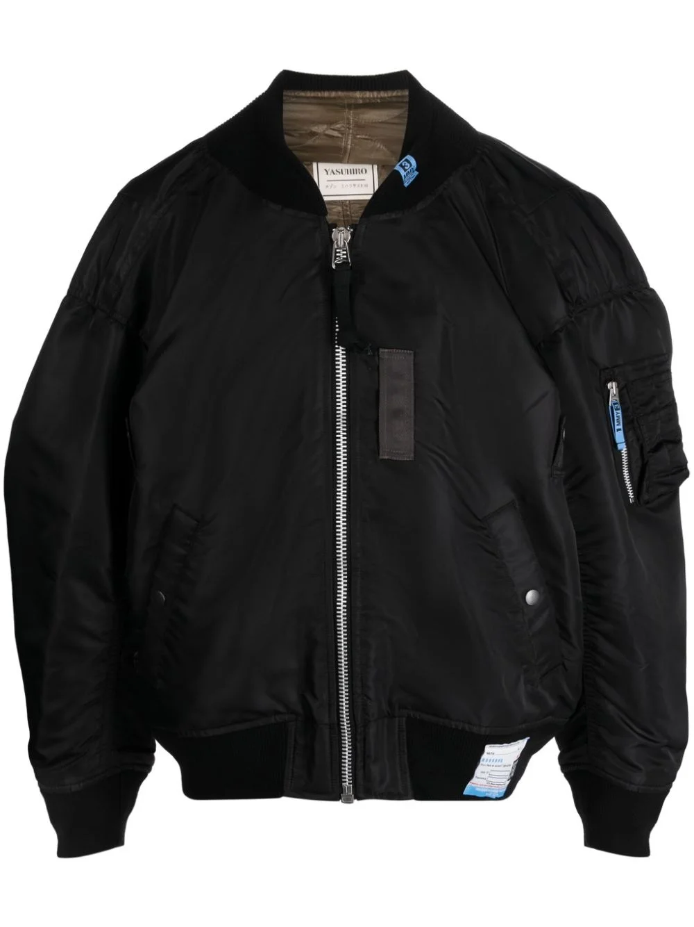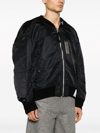 panelled wool bomber jacket Highlights - Black - Wool - Panelled design - Logo-print strap - Baseball collar - Front zip fastening - Long sleeves - Sleeve zip pocket - Side button-fastening pocket Imported Composition Lining: Nylon 100%, Polyester 100% Outer: Nylon 100%, Wool 100% SIZE & FIT Model measurements Height 6 ft 1 in(1.86 m) Bust/Chest 37.4 in(95 cm) Hips 36.22 in(92 cm) Waist 29.52 in(75 cm) FittingInformation Designed for an oversized fit, offering additional room throughout The ribbed hem offers a close, comfortable fit Made from a padded non-stretch fabric, giving it no natural elasticity This piece fits true to size – if you would prefer a closer fit, take one size down Washing instructions Dry Clean Only