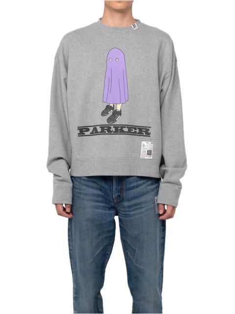 【 2023-24 Autumn/Winter Collection 】 PARKER Printed Pullover Sweatshirt BILLY. BILLY is a shy boy, and when he goes outside, he realizes he has no clothes, so he covers himself with a sheet. Sweatshirt with BILLY wearing the Parker model of the original sole sneaker and the word "PARKER" are printed on the front. Wearing model : 184cm Wearing size : 46 - Item No: A11PO724 - Brand: Maison MIHARA YASUHIRO - Category: MENS » TOPS » SWEATSHIRTS - Season: 2023 A/W - Material: COTTON100% - Made In: JAPAN