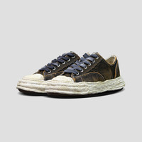 - Maison Mihara Yasuhiro - Peterson Low Top Sneaker - Washed Denim - Round toe - Lace-up closure - Vintage Treatment Canvas upper - Studded - Branded tongue - Sculpted platform midsole - Rubber outsole - Color: Black - Material: 100% Denim; 100% Rubber - US (MENS) EU CM 5 37 23.5 6 38 24 7 39 24.5 7.5 40 25 8 41 25.5 9 42 26.5 10 43 27.5 11 44 28 12 45 28.5 13 46 29 14 47 29.5