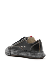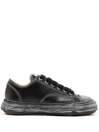 Peterson 23 Original Sole chunky sneakers Maison Mihara Yasuhiro's Original Sole evolved from a clay creation that was hand-moulded by the eponymous designer. A grained leather version defines these Peterson 23 sneakers, which boast a retro basketball-inspired silhouette. Highlights - Black - Leather - Grained texture - Contrast stitching - Logo patch at the tongue - Round toe - Front lace-up fastening - Chunky rubber sole Imported Composition Sole: Rubber 100% Outer: Calf Leather 100% Lining: Calf Leather 100% SIZE & FIT Measurement HEIGHT 2.75 in(7 cm) PLATFORM 1.57 in(4 cm)