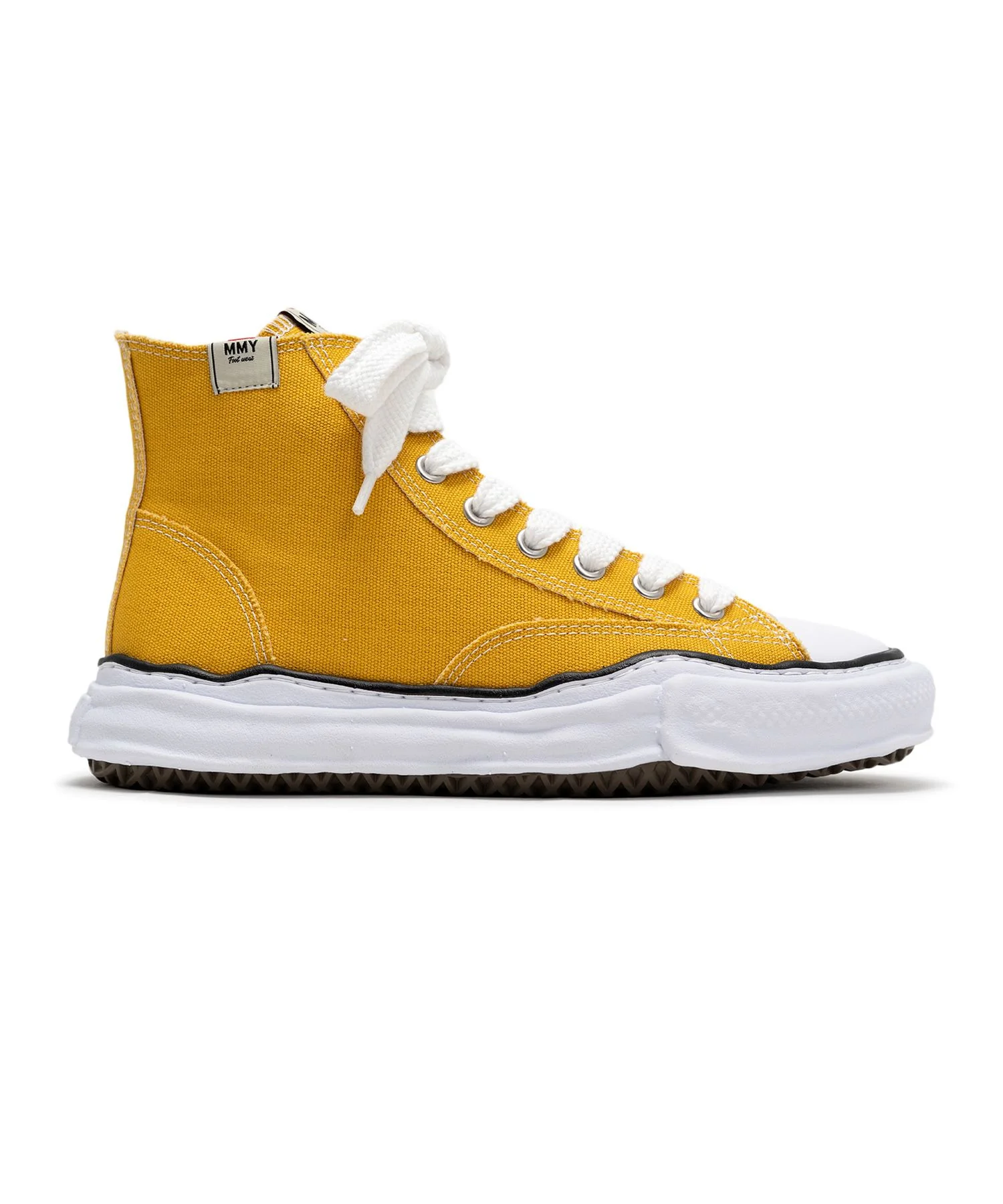 "PETERSON" Original Sole Canvas High-top Sneaker The sneaker uses original sole created by the designer MIHARA modeled by hand using clay. The STANDARD PETERSON model. Canvas upper. * Please note that the notations for 'JP' and 'US' are shown for reference purposes only. ※Product images may appear different from the actual item due to lighting conditions during photography or variations in monitor settings. ※Some photos feature sample items; actual products may differ slightly in finish or sizing. ※Color, texture, and specifications may vary slightly due to differences in production timing or individual characteristics of each piece. We appreciate your understanding. - Item No: A01FW701 - Brand: Maison MIHARA YASUHIRO - Category: EVERYONE » SHOES » SNEAKERS - Material: UPPER : COTTON SOLE : RUBBER - Made In: CHINA