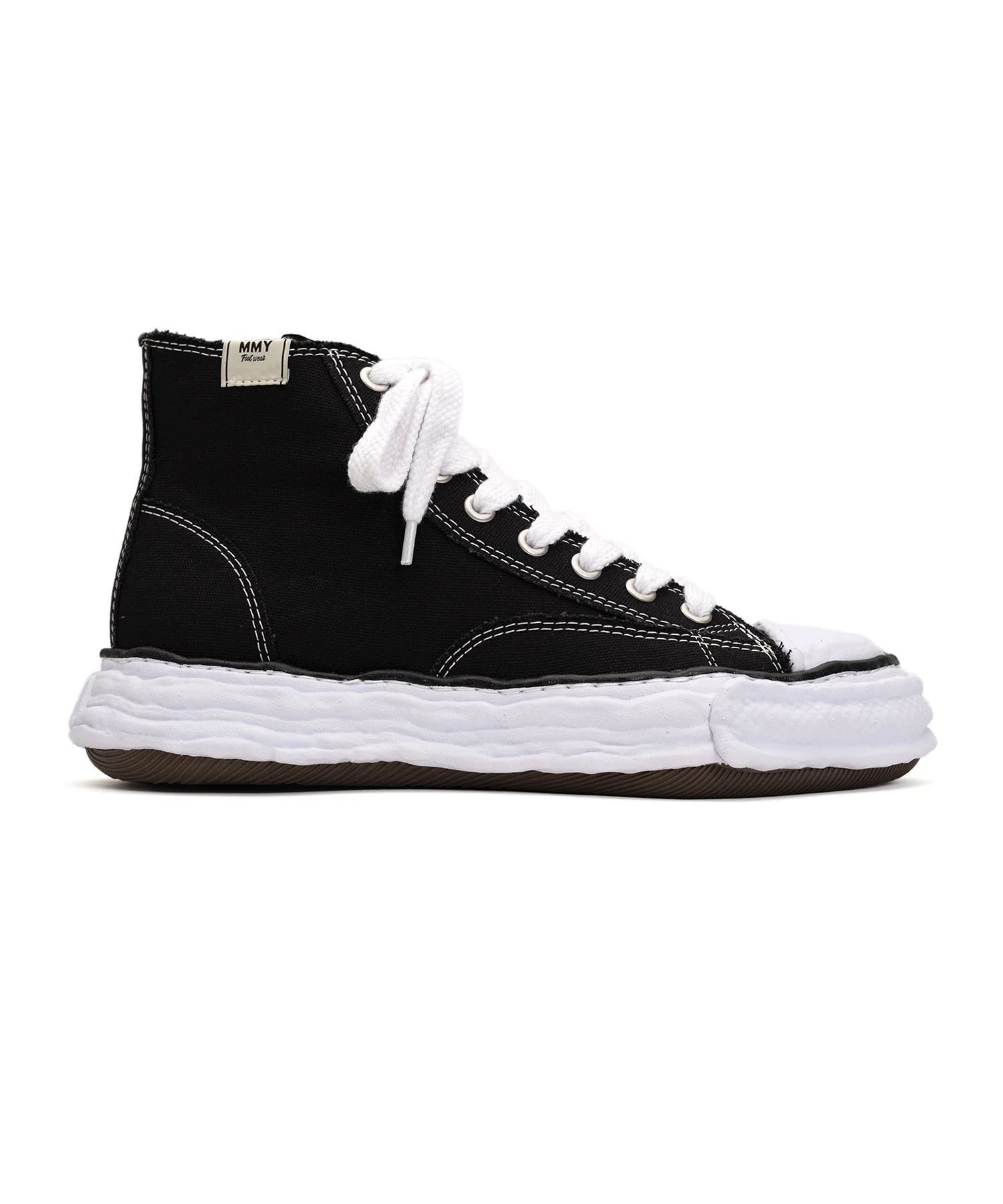 "PETERSON23" Original Sole Canvas High-top Sneaker The sneaker uses original sole created by the designer MIHARA modeled by hand using clay. New model "Peterson 23". An updated version of the Peterson model. Shoe width is widened to give a more comfortable fit. Toe part is also made of the same material as the sole, giving it a three-dimensional design. Canvas upper. * Please note that the notations for 'JP' and 'US' are shown for reference purposes only. ※Product images may appear different from the actual item due to lighting conditions during photography or variations in monitor settings. ※Some photos feature sample items; actual products may differ slightly in finish or sizing. ※Color, texture, and specifications may vary slightly due to differences in production timing or individual characteristics of each piece. We appreciate your understanding. - Item No: A11FW701 - Brand: Maison MIHARA YASUHIRO - Category: EVERYONE » SHOES » SNEAKERS - Material: UPPER : COTTON SOLE : RUBBER - Made In: CHINA