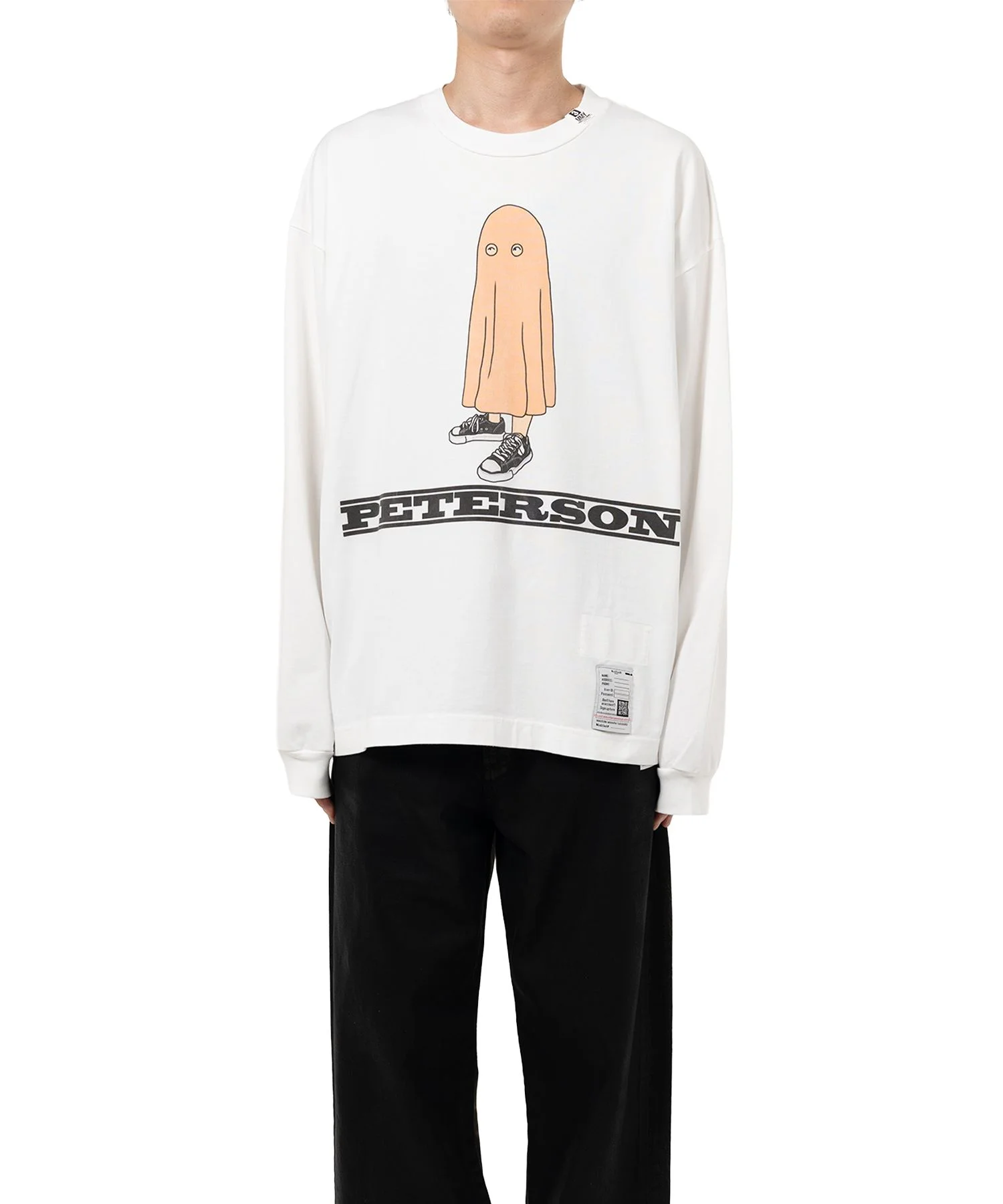 【2025 Autumn/Winter Collection】 PETERSON Printed Long Sleeve Tee Billy-kun printed long-sleeve T-shirt. Features Billy-kun wearing the original sole sneakers' Peterson model and the word “PETERSON” printed on the front. Shy Billy-kun realized he had no clothes to wear when going outside, so he's wearing a sheet. Crew neck. Wearing model : 180cm Wearing size : 46 ※Product images may appear different from the actual item due to lighting conditions during photography or variations in monitor settings. ※Some photos feature sample items; actual products may differ slightly in finish or sizing. ※Color, texture, and specifications may vary slightly due to differences in production timing or individual characteristics of each piece. We appreciate your understanding. - Item No: A15LT652 - Brand: Maison MIHARA YASUHIRO - Category: MENS » TOPS » TSHIRTS - Season: 2025 A/W - Material: COTTON100% - Made In: JAPAN