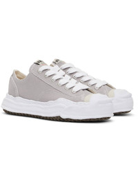 Low-top cotton canvas sneakers in gray. · Layered sculptural rubber cap toe · Lace-up closure · Logo flag at tongue · Eyelets at inner side · Logo embossed at heel · Felt and canvas lining · Hand-molded sculptural foam rubber midsole · Treaded rubber sole · Contrast stitching in white Supplier color: Gray