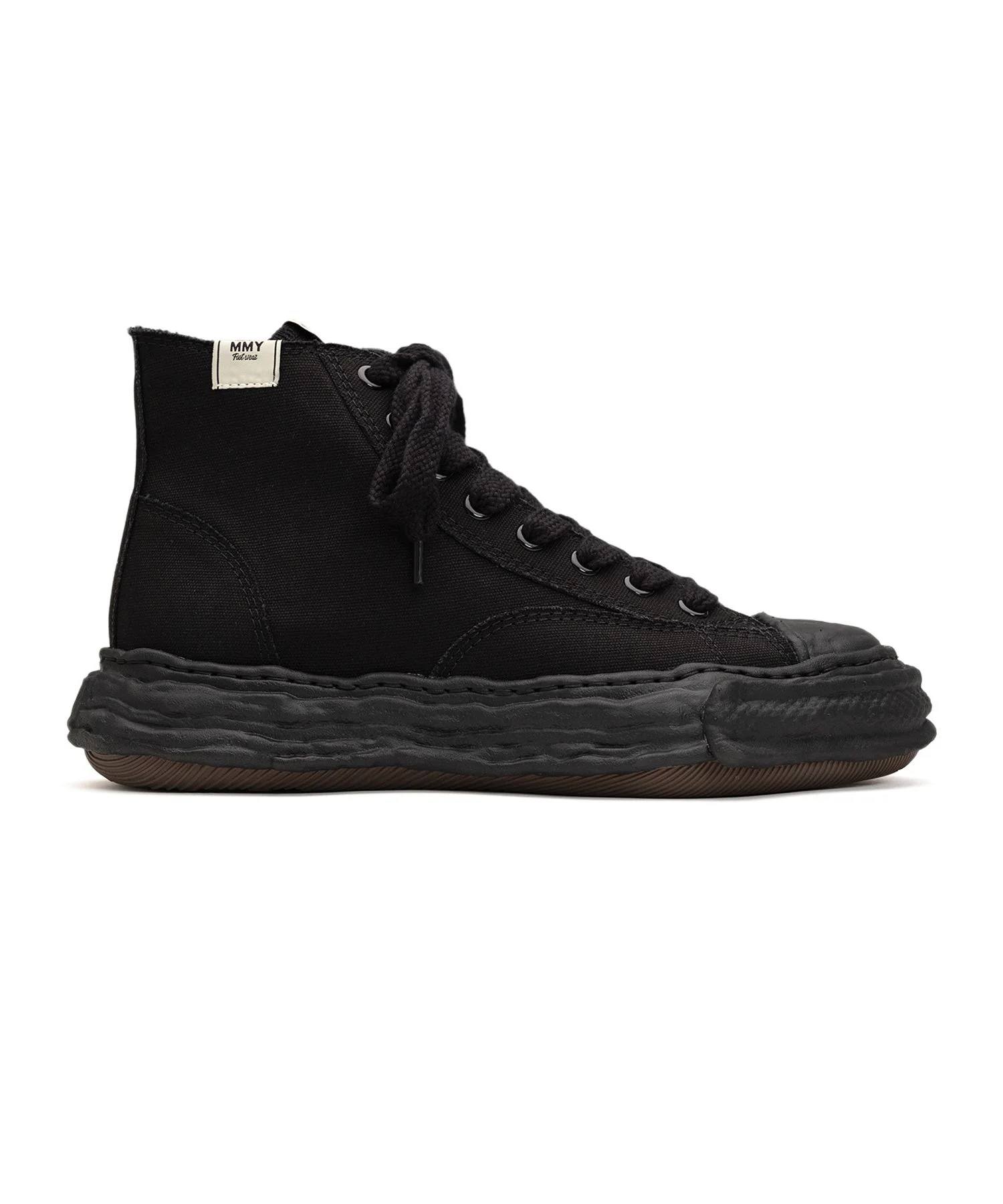 "PETERSON23" Original Sole Canvas High-top Sneaker The sneaker uses original sole created by the designer MIHARA modeled by hand using clay. New model "Peterson 23". An updated version of the Peterson model. Shoe width is widened to give a more comfortable fit. Toe part is also made of the same material as the sole, giving it a three-dimensional design. Canvas upper. * Please note that the notations for 'JP' and 'US' are shown for reference purposes only. ※Product images may appear different from the actual item due to lighting conditions during photography or variations in monitor settings. ※Some photos feature sample items; actual products may differ slightly in finish or sizing. ※Color, texture, and specifications may vary slightly due to differences in production timing or individual characteristics of each piece. We appreciate your understanding. - Item No: A11FW701 - Brand: Maison MIHARA YASUHIRO - Category: EVERYONE » SHOES » SNEAKERS - Material: UPPER : COTTON SOLE : RUBBER - Made In: CHINA