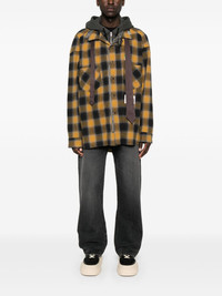 plaid-check shirt Highlights - Ochre yellow - Front press-stud and zip fastening - Layered design - Drawstring hood - Chest patch pocket Imported Composition Cotton 100%, Polyester 100% SIZE & FIT Model measurements Height 6 ft 2 in(1.87 m) Bust/Chest 36.41 in(92.5 cm) Hips 37 in(94 cm) Waist 29.52 in(75 cm) FittingInformation Designed to be unstructured, offering a loose fit throughout Made from a midweight non-stretch fabric, this piece offers minimal elasticity when worn